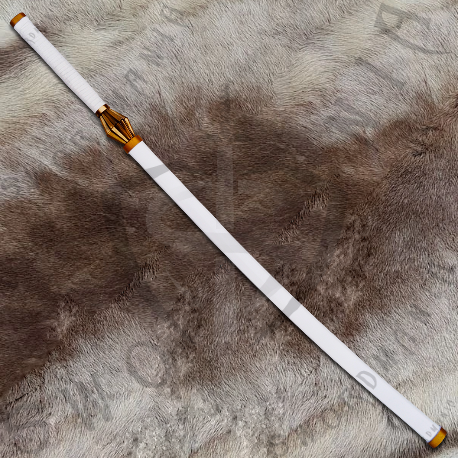 Every detail of Nozarashi is recreated with intensity from the massive, cleaver-like blade to the rough, bold aesthetic that captures Kenpachi’s fierce personality. The handle is solid wood, tightly wrapped in white cord for a firm grip, offering not only functionality but visual impact. Its aggressive silhouette and heavy build make it a bold centerpiece for any fan of the series.