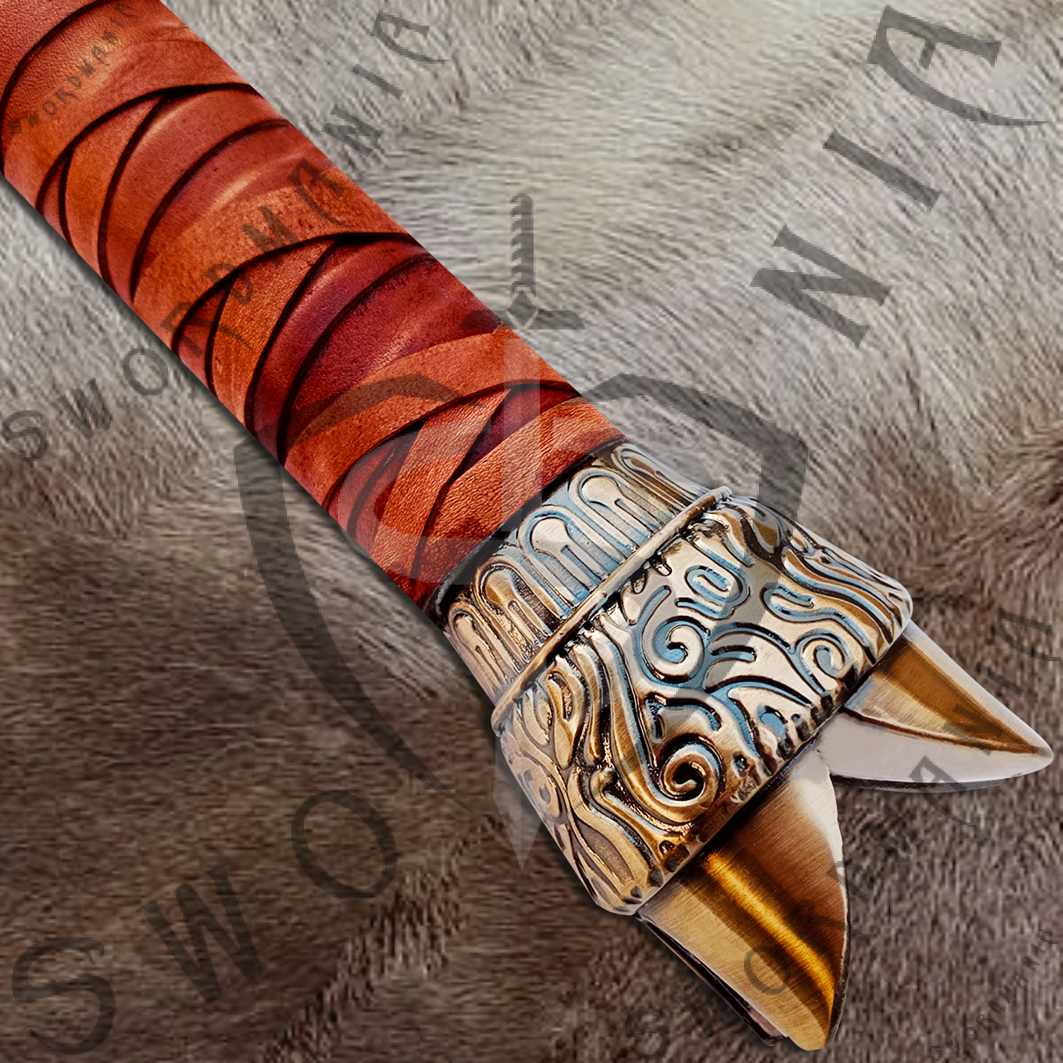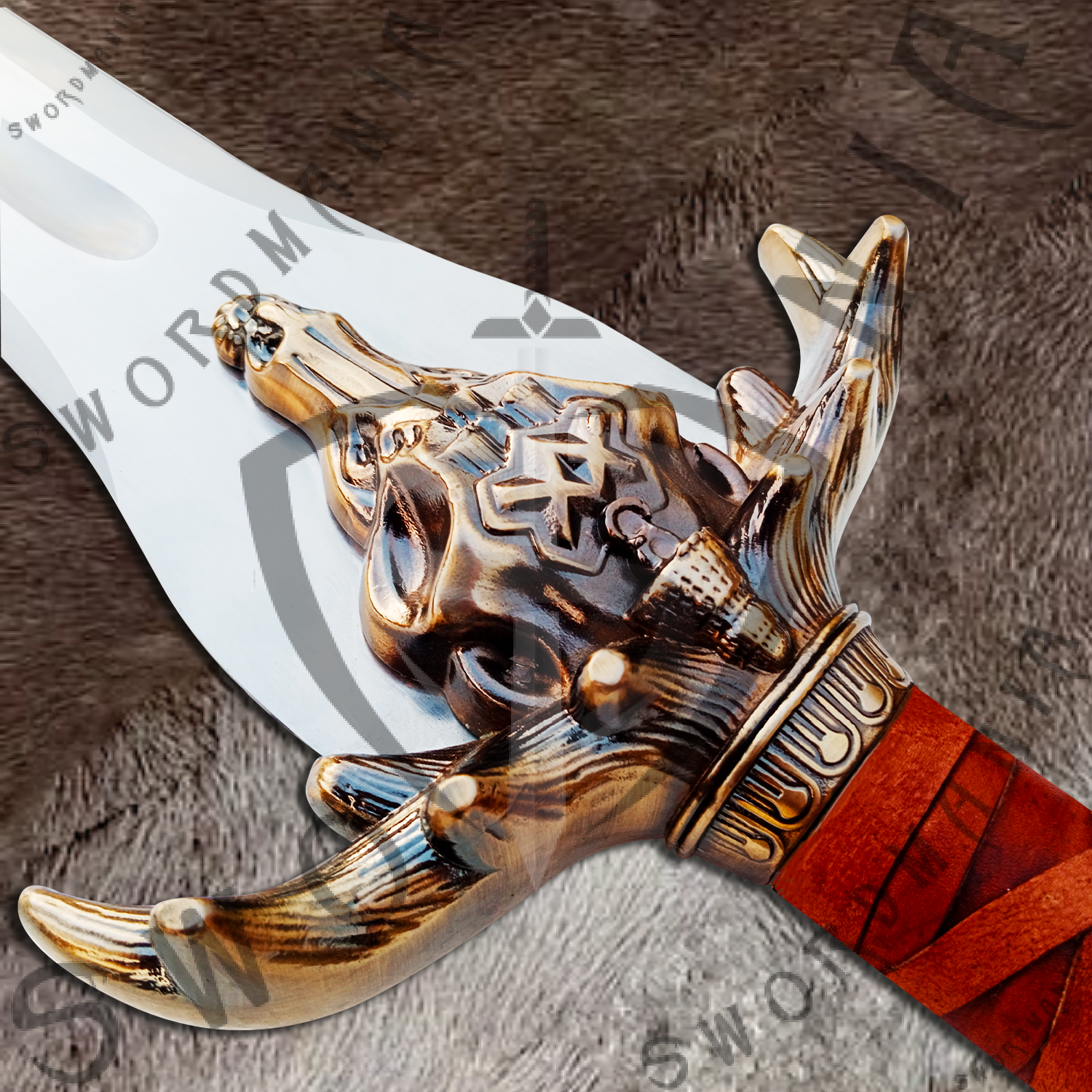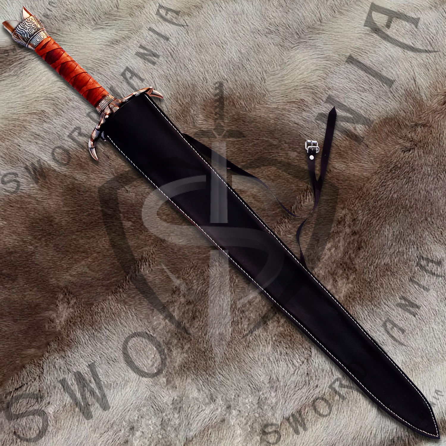 The Father Conan Sword is paired with a stunning table plaque, designed to enhance the visual impact of this incredible weapon. This plaque serves as both a tribute to Conan’s legacy and a fitting way to display your sword with pride. The sword also comes with a finely crafted leather scabbard, offering protection while showcasing the sword’s remarkable craftsmanship.