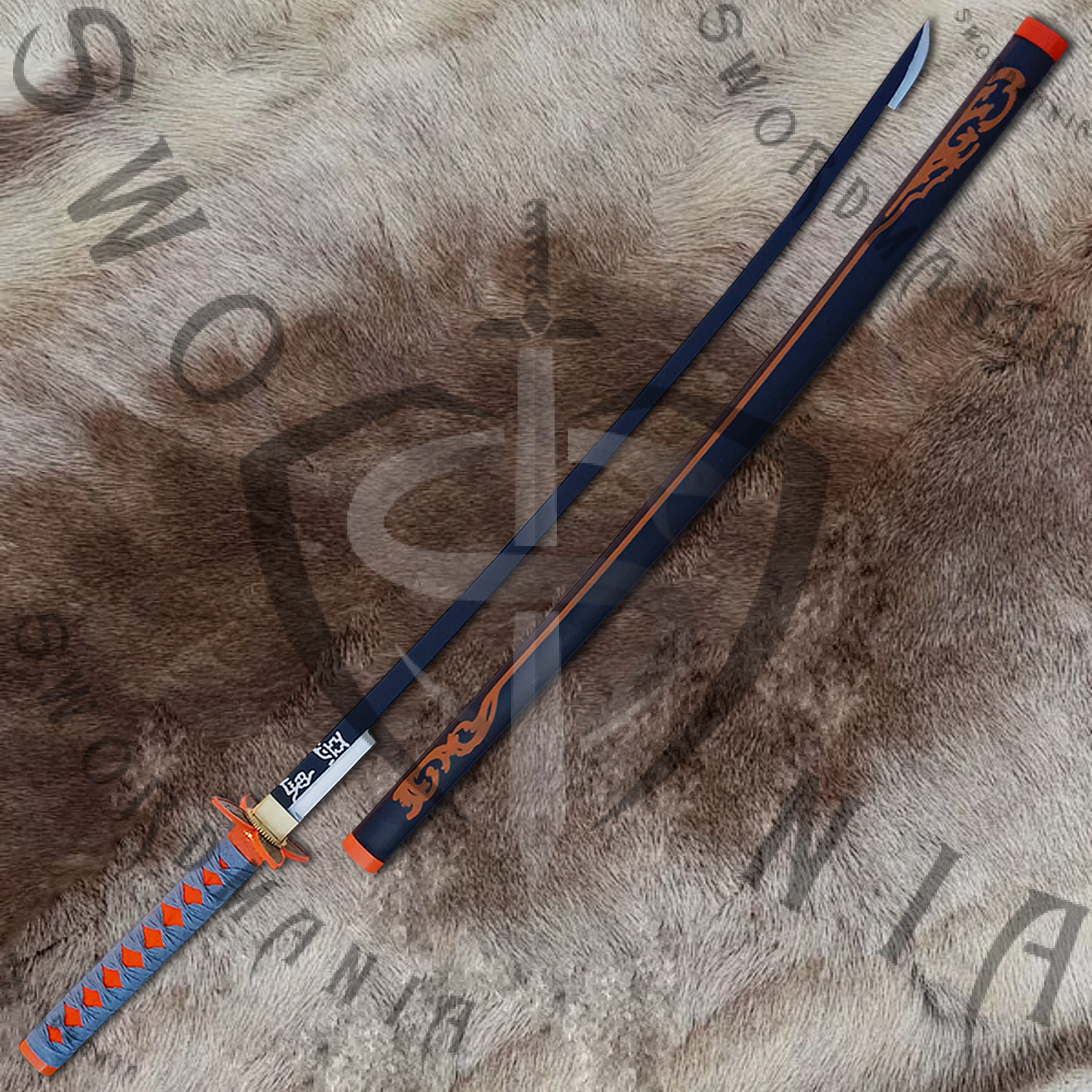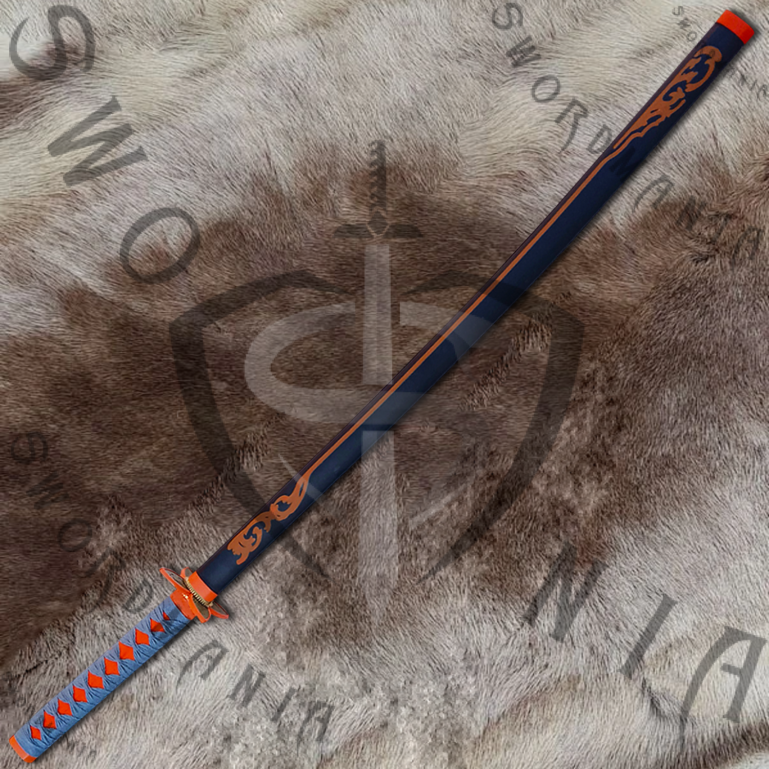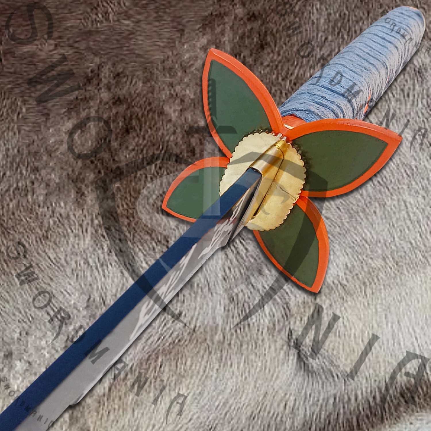 This is a full scale, 41inch full tang replica sword of Shinobu Kocho Nichirin from Demon Slayer, a marvelous adventure series of Kimetsu No Yaiba, that has forged blade available in various steel types with cosplay style construction and functional style construction. The blade is slim more likely a stinger and hand wrapped cord on the handle. Shinobu Sword have wooden plaque and scabbard.