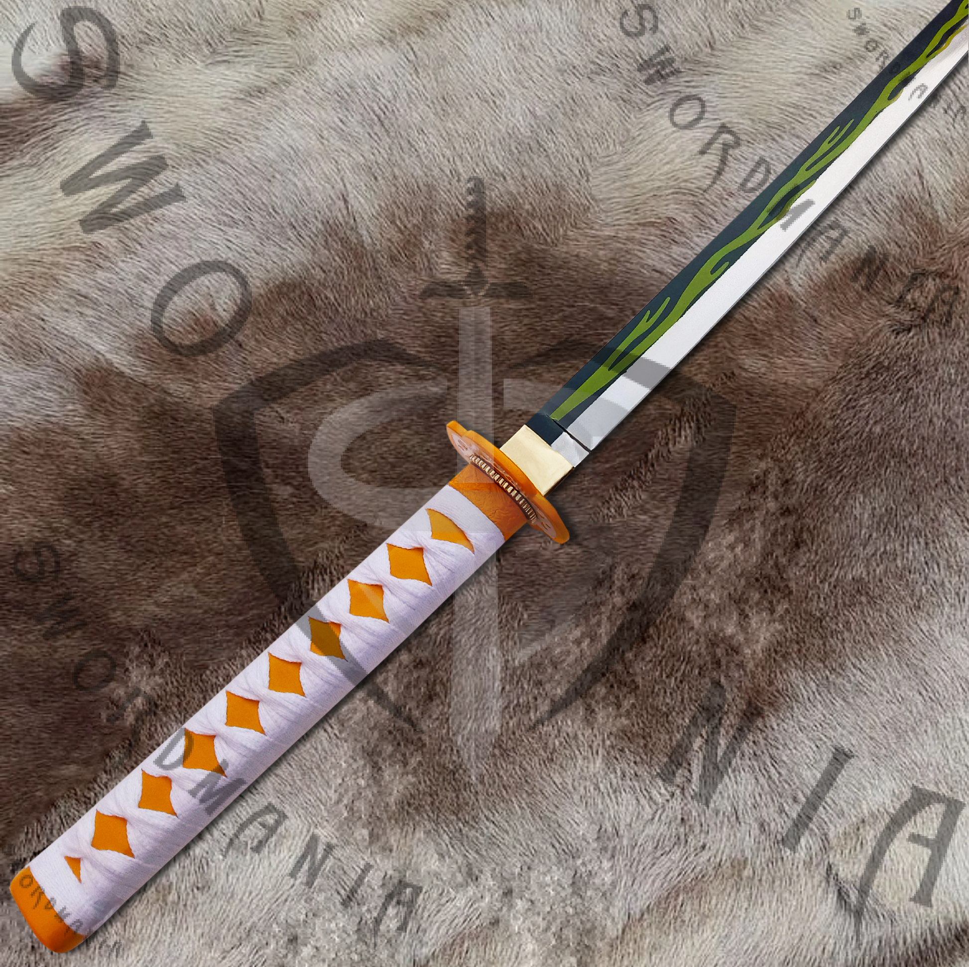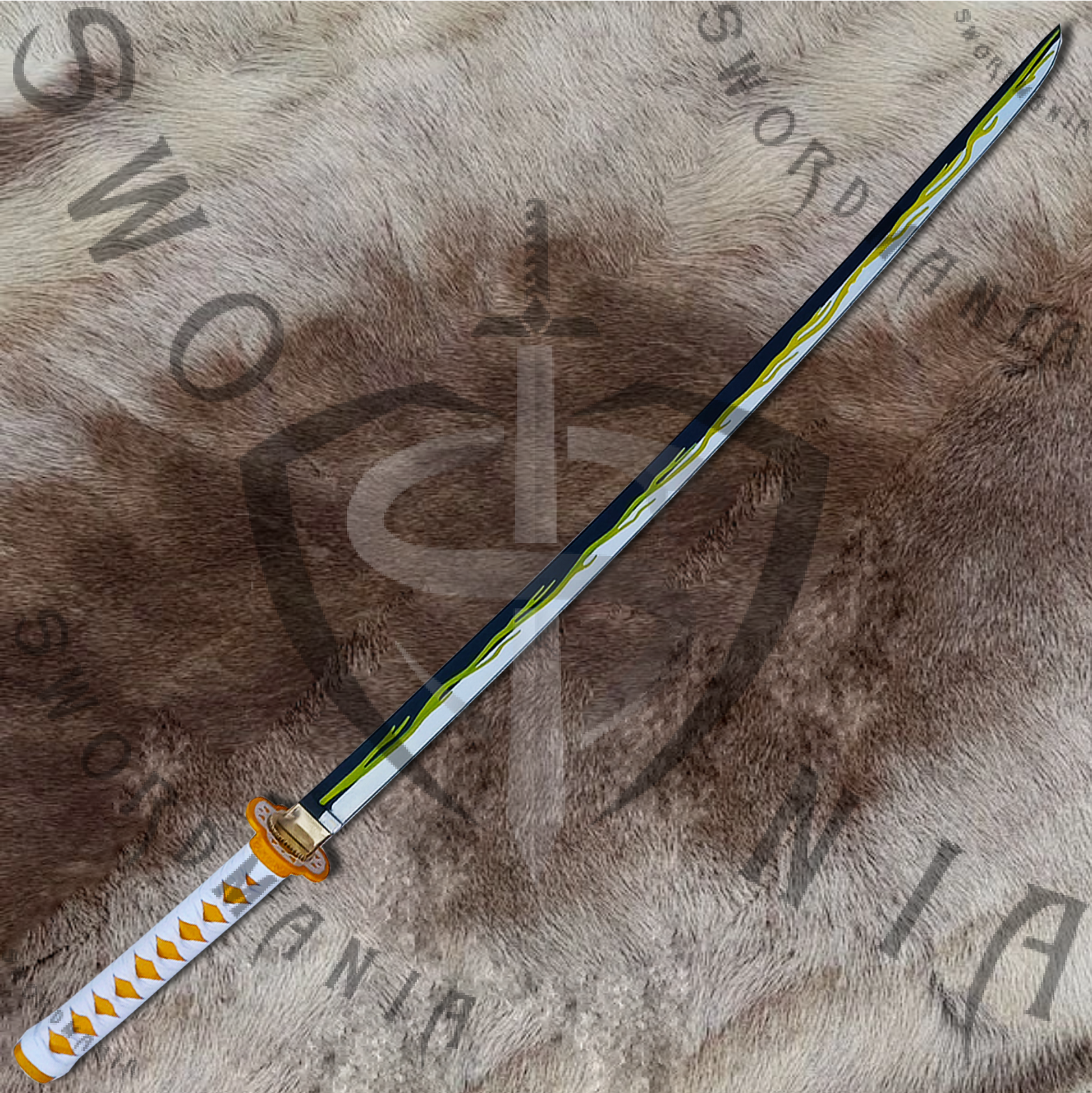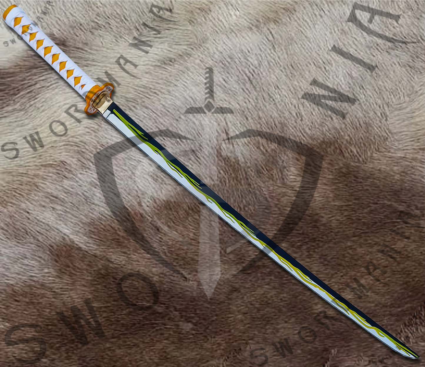 Experience the magic of the valley of Demons and their Slayers with Rengoku Sword of Kyojuro which is meticulously crafted masterpiece that pays homage to one of the most iconic prop in the realm of fantasy literature and gaming culture. These stunning 41inch replica sword is a true work of art, faithfully recreating every intricate detail of the original with precision and dedication.This legendary sword stand as a testament to the artistry and craftsmanship of Swordmania, epitomizing Rengoku valorous legacy.