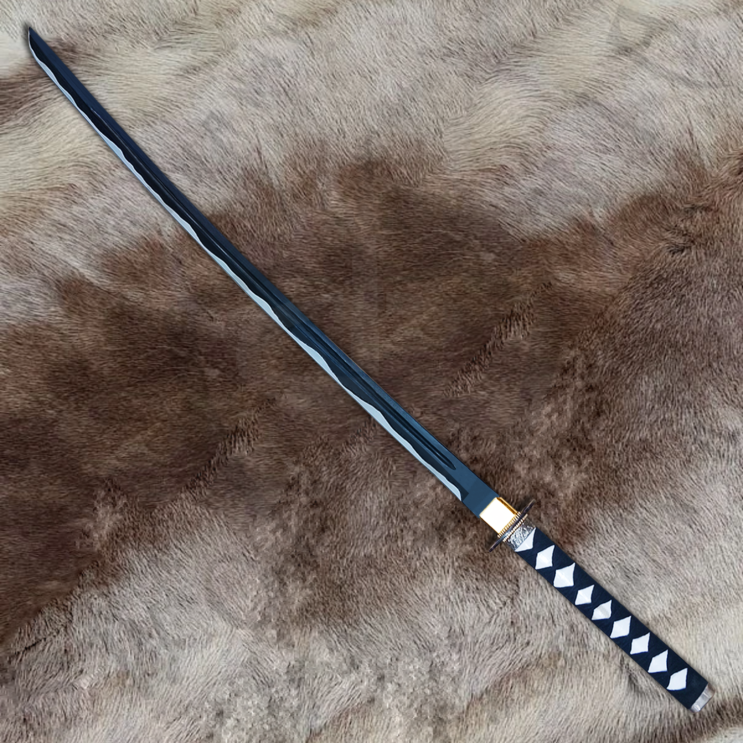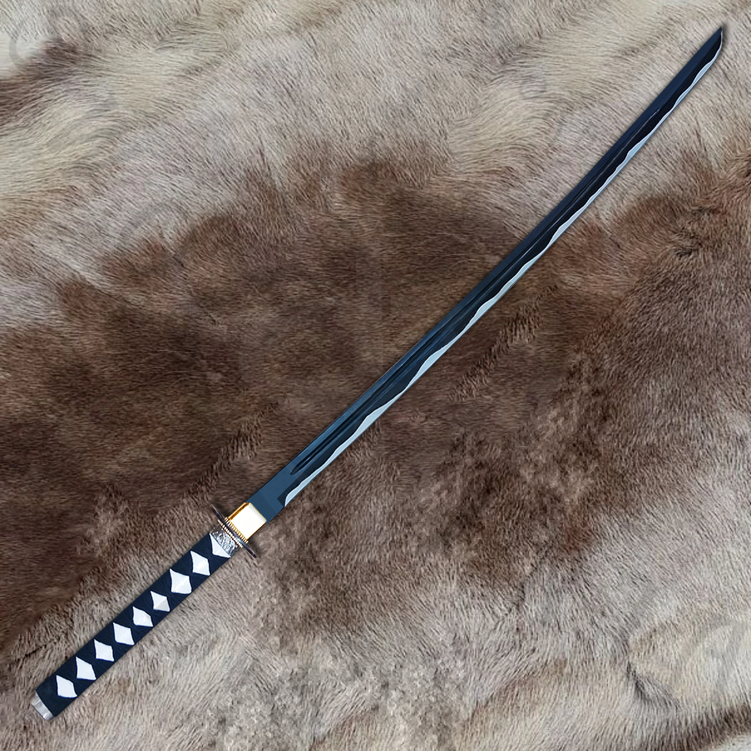 The 30inch blade is forged to capture the Nagakiba’s iconic extended length and graceful curvature making it ideal for wide sweeping strikes and precise, punishing cuts. Paired with a 10inch handle, this piece mirrors the two handed finesse that makes the katana a favorite among dexterity focused warriors. The full tang design ensures durability and realism for collectors or practitioners alike.