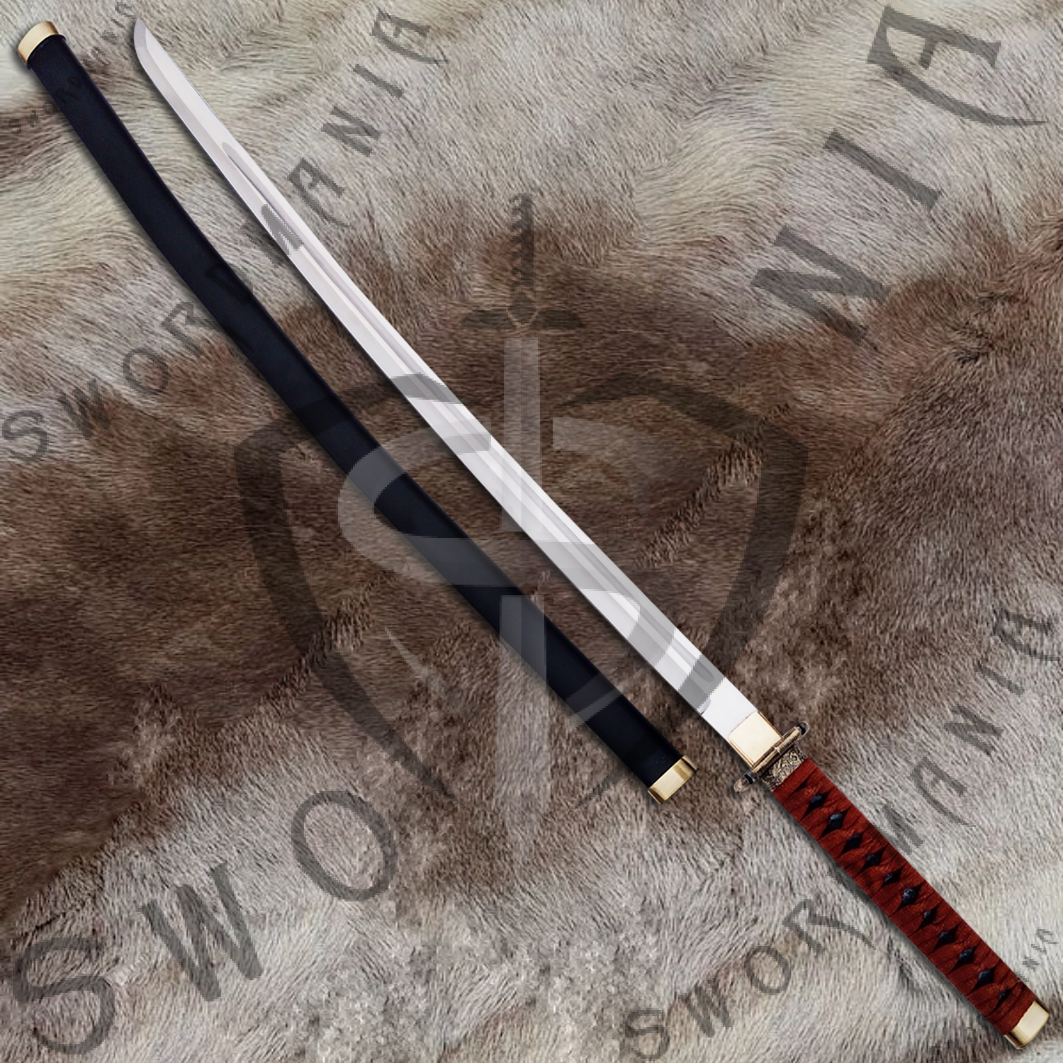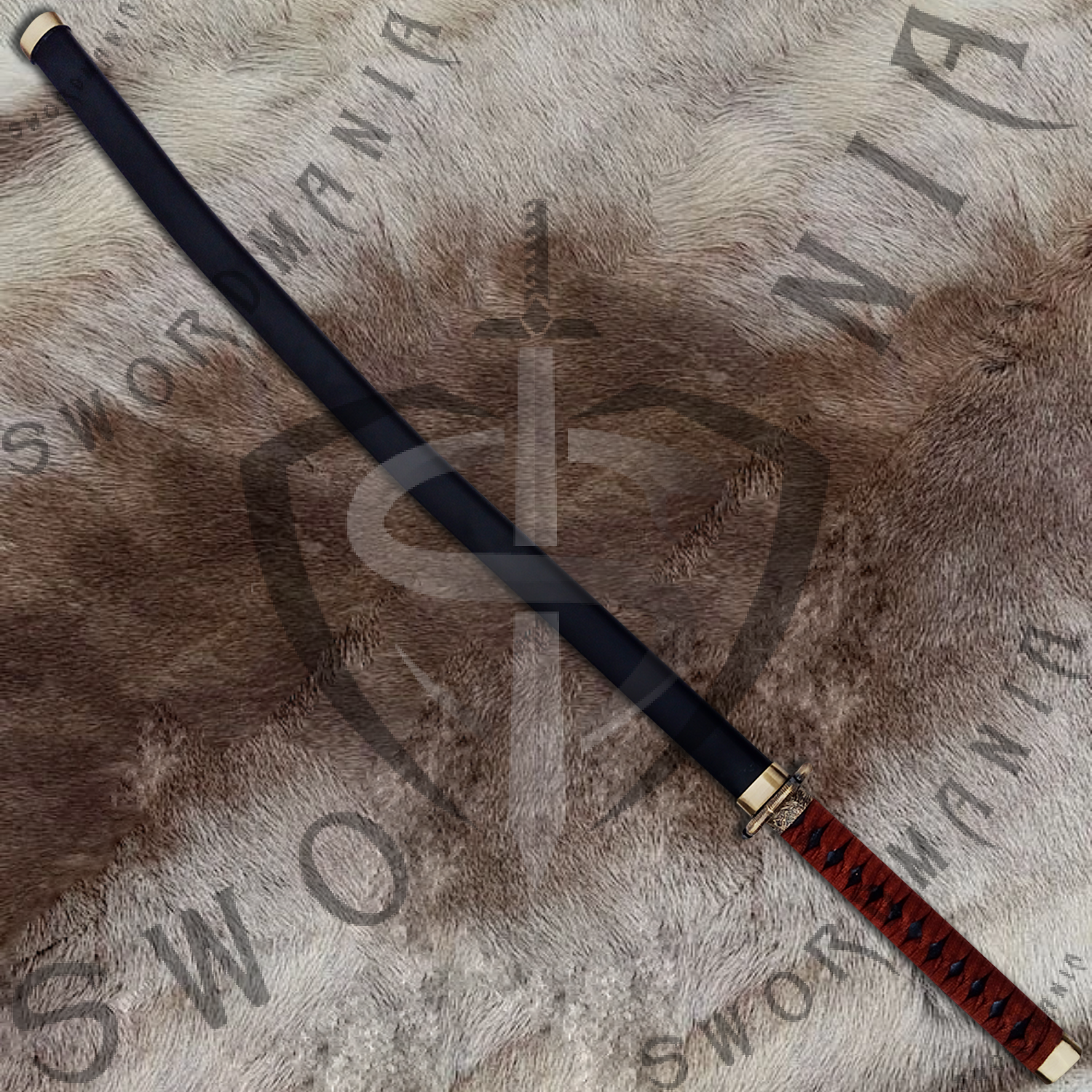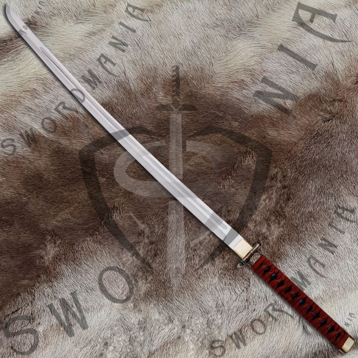 This is a full scale 41inch replica of Uchigatana from Elden Rings, a prominent and distinctive name in the world of gaming. The sword has a forged blade 29inch and handle is 12inch which is available in variety of steel types with cosplay style construction and functional style construction. The sword also comes with scabbard and a wooden plaque concurrent with the design of the sword and its finish.