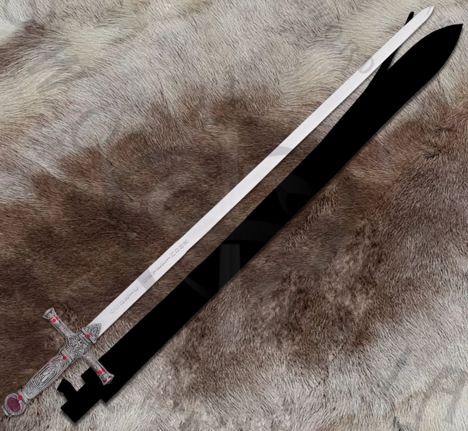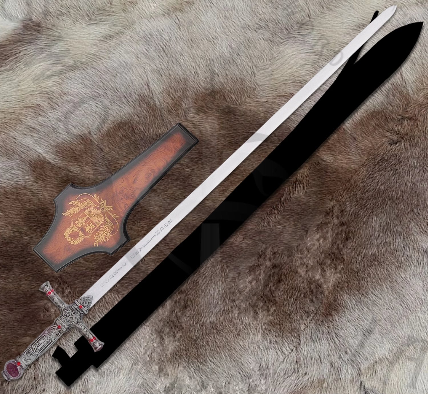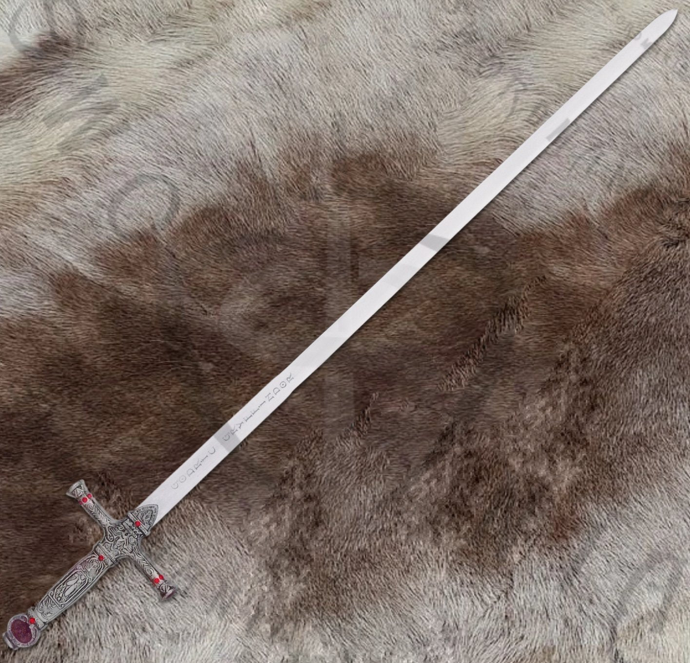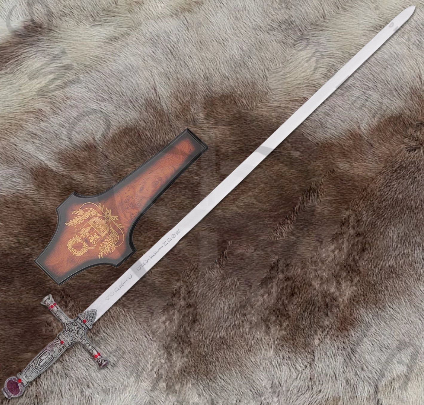 This replica stays true to the sword’s depiction in the Harry Potter series, particularly as wielded by Harry in his battle against the basilisk and later by Neville in the final stand against Voldemort. Every detail, from the ornate crossguard to the pointed pommel, reflects the craftsmanship of goblin-forged design. The 30-inch blade features a polished finish, etched with runes that evoke the magical essence of Gryffindor's legacy.