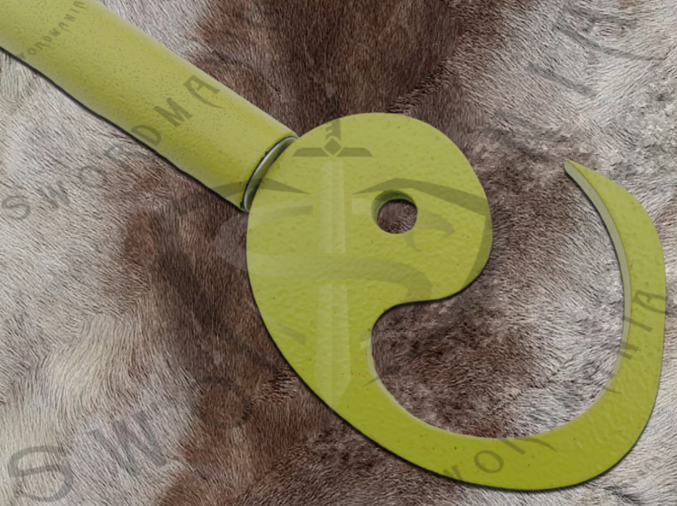 This is a full scale, replica of Grand Master Oogway's Ying Yang Staff from the martial arts comedy franchise "Kung Fu Panda" by Ethan Reiff and Cyrus Voris. The staff is used by Oogway for walking, meditation and fights as well. This staff is also representative of Oogway's wisdom and respect in the entire Valley of Peace because of his foundation of The Jade Palace. He was the mentor and friend of Shifu who was the master of he Furious Five and Dragon Warrior Po.