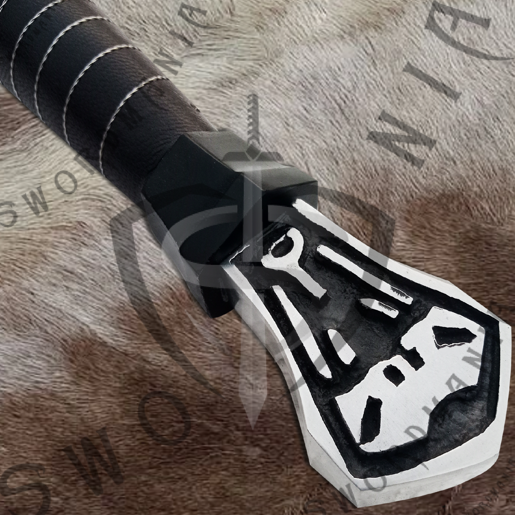 The Viper Sword of Witcher is a prized possession of The Steward of Ciri (along with Yennifer) which was features a striking design and an enchanting blend of Witchers' craftsmanship and their acumen bravery. It is 45inches in total length Forged from the finest steel and imbued with arcane rituals. The 34-inch blade boasts a mirror-polished finish, adorned with intricate runes that form consistency with the runes of guard paying homage to its origin and purpose.